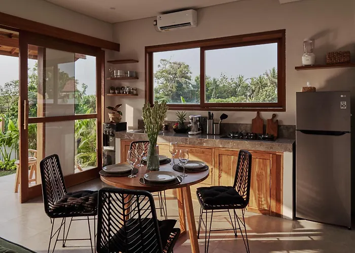 Die New 2Br Private Pool Villa Near Seseh Beach Canggu ist mit einem Kühlschrank und einem Herd sowie einer voll ausgestatteten Küchenzeile ausgestattet. Diese Unterkunft ist rund 4 Kilometer vom Restaurant honey, entfernt, wo die Gäste verschiedene Mahlzeiten genießen können.